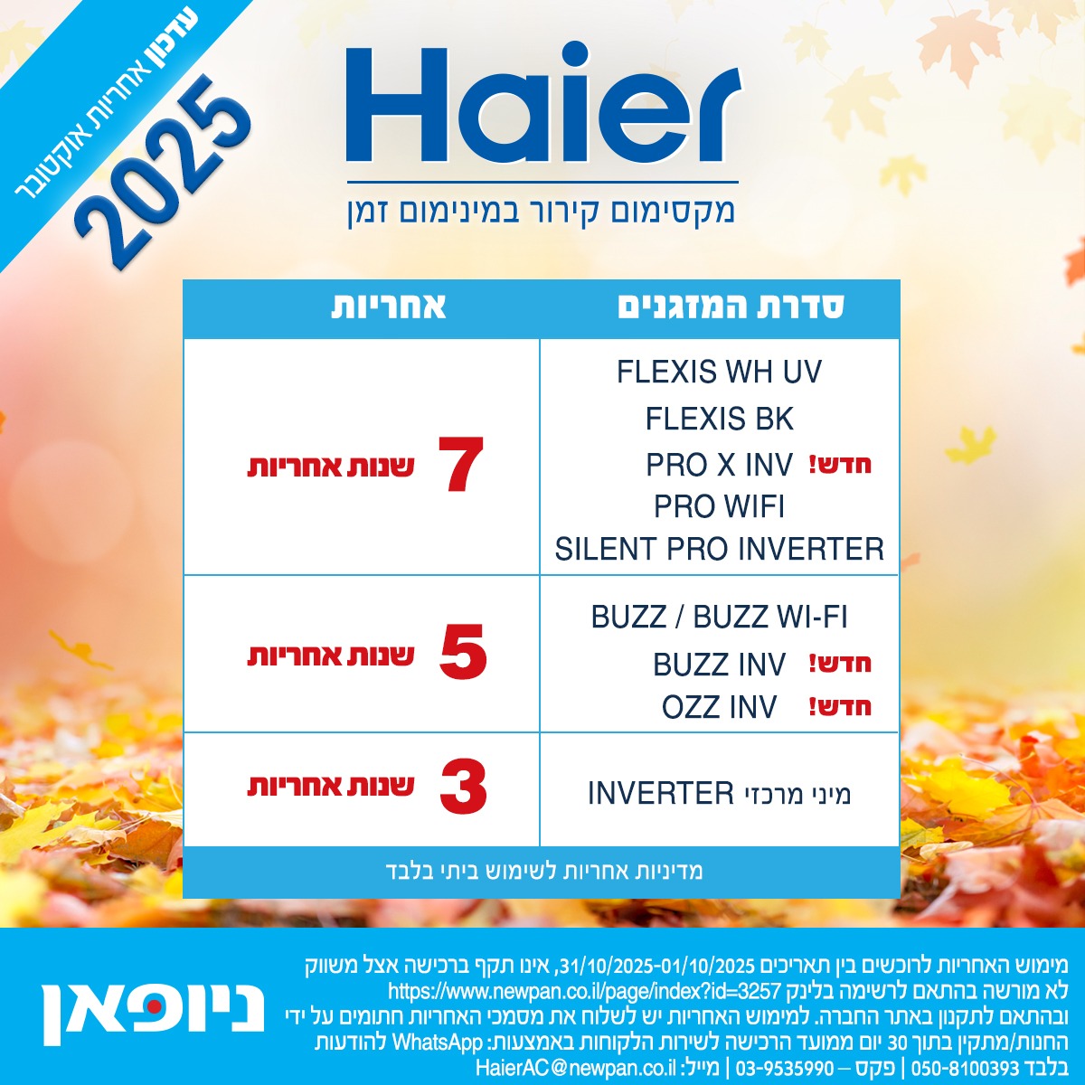 אחריות מזגני האייר Haier |