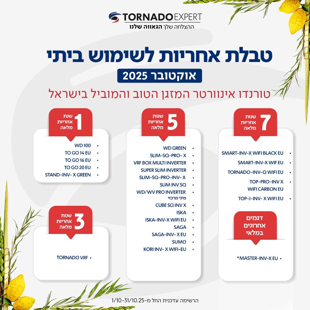 אחריות מזגני טורנדו Tornado |