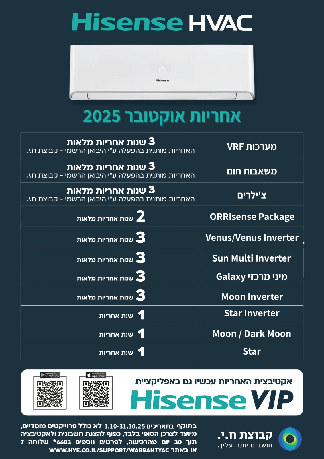 אחריות מזגני הייסנס Hisense |