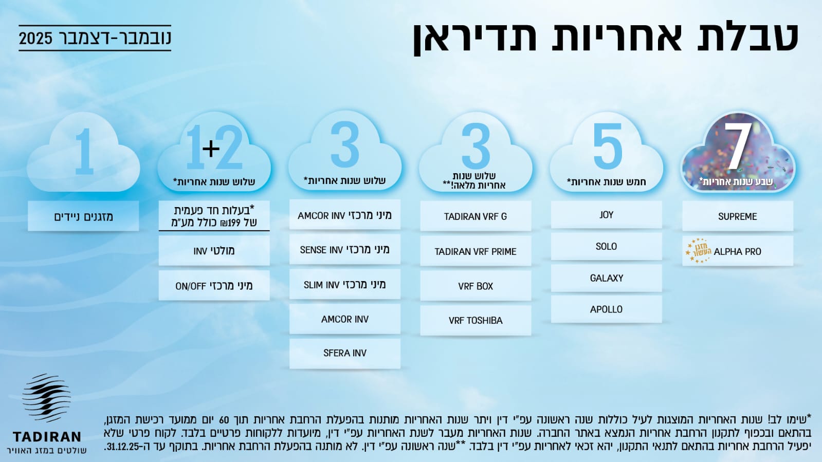 אחריות מזגני תדיראן Tadiran |
