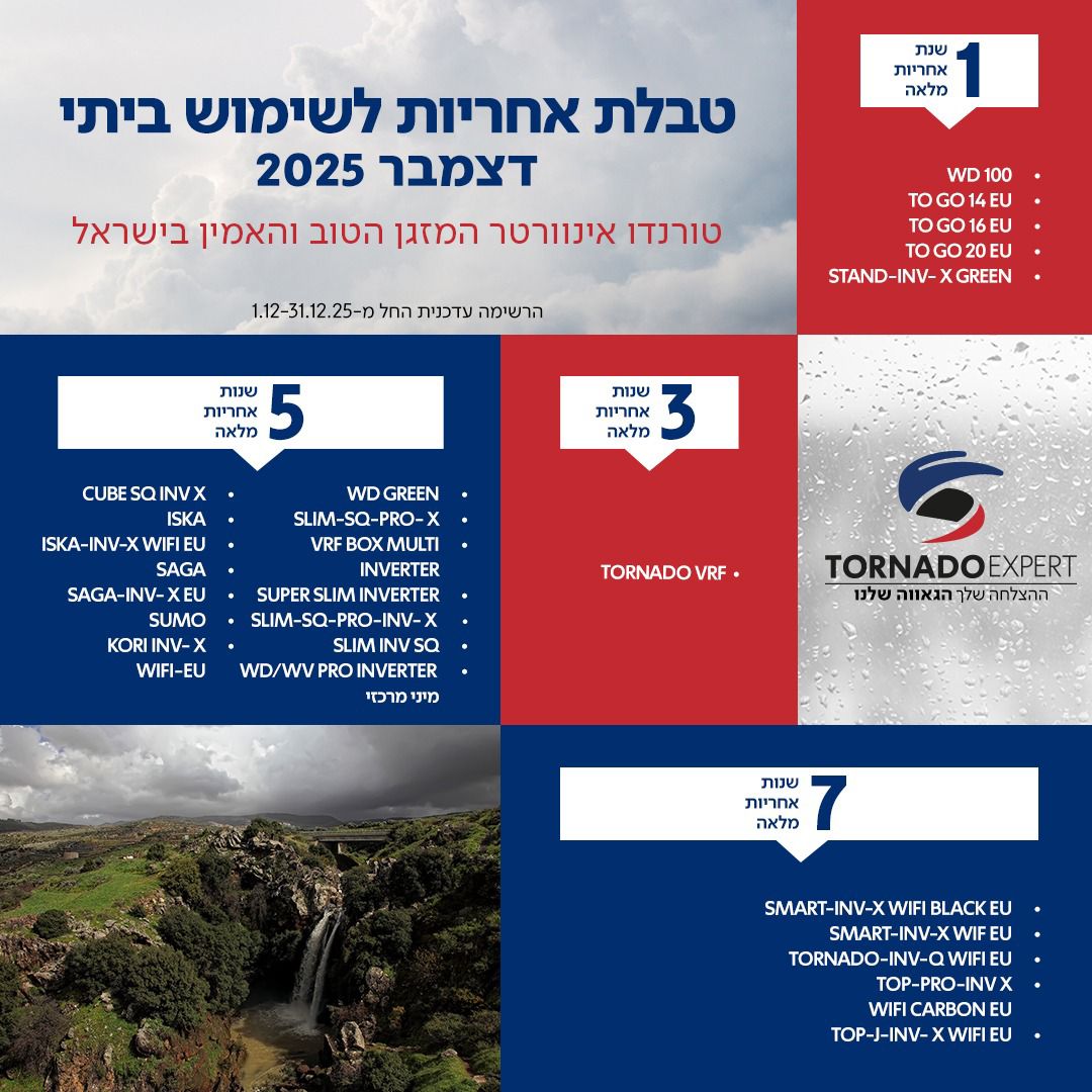 אחריות מזגני טורנדו Tornado |