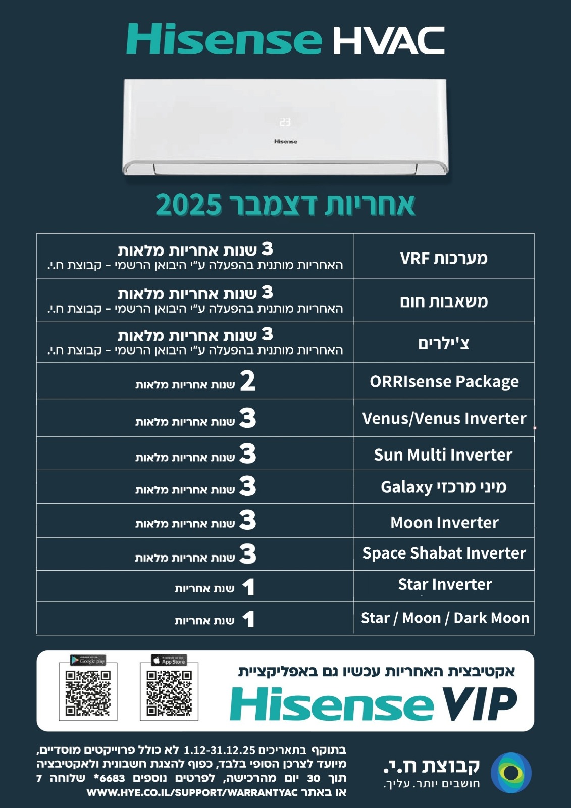 אחריות מזגני הייסנס Hisense |